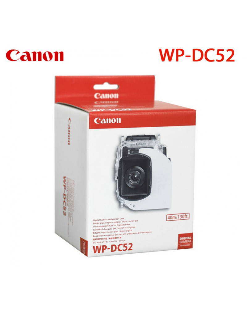 The WP-DC52 Waterproof Case from Canon is a durable underwater housing for your PowerShot G16 digital camera. It has a depth rating of 131'. Mechanical controls provide access to all camera functions. The case is constructed from clear polycarbonate and has an integrated flat glass lens port with an anti-reflective coating on both sides. It comes configured with a cold shoe for mounting accessories. The camera's built-in pop-up flash is usable within the WP-DC52, which includes a flash diffuser to soften the light of the flash, thus preventing harsh light from causing glare, backscatter, and hard shadows. Additionally, you can connect an optional fiber optic cable for an external strobe via the included attachment. A neck strap, wrist strap, and silicone grease are included.