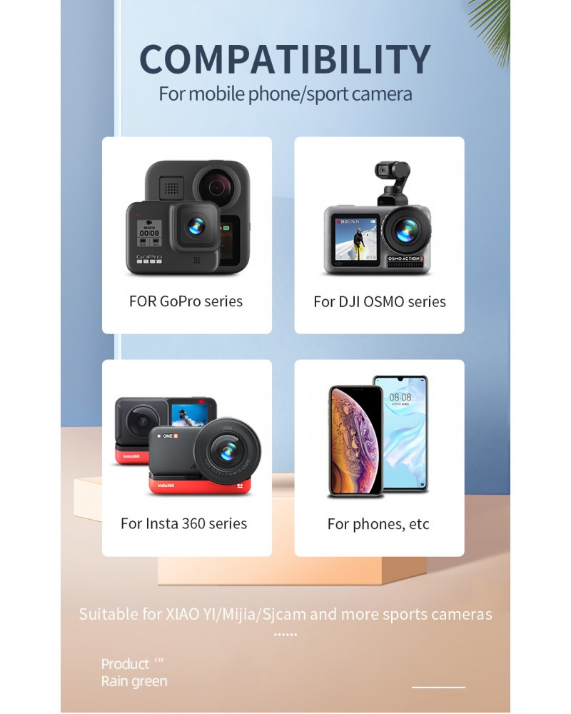 4. Suitable for GOOPR HERO series sports camera, panoramic camera insta360, Gopro Fusion Mobile phone and other panoramic cameras SJCAM EKEN Small ants and other sports cameras.