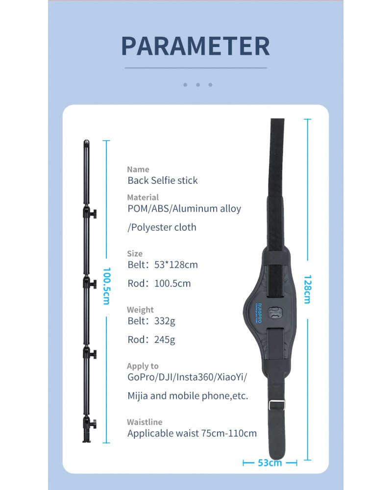 Wearable Belt Waistband Back Bar Monopod Mount Bracket For GoPro Hero 5 6 7 8 9 Max Insta360 ONE X R Yi 4K+Selfie Mobile phone Stick Adapter