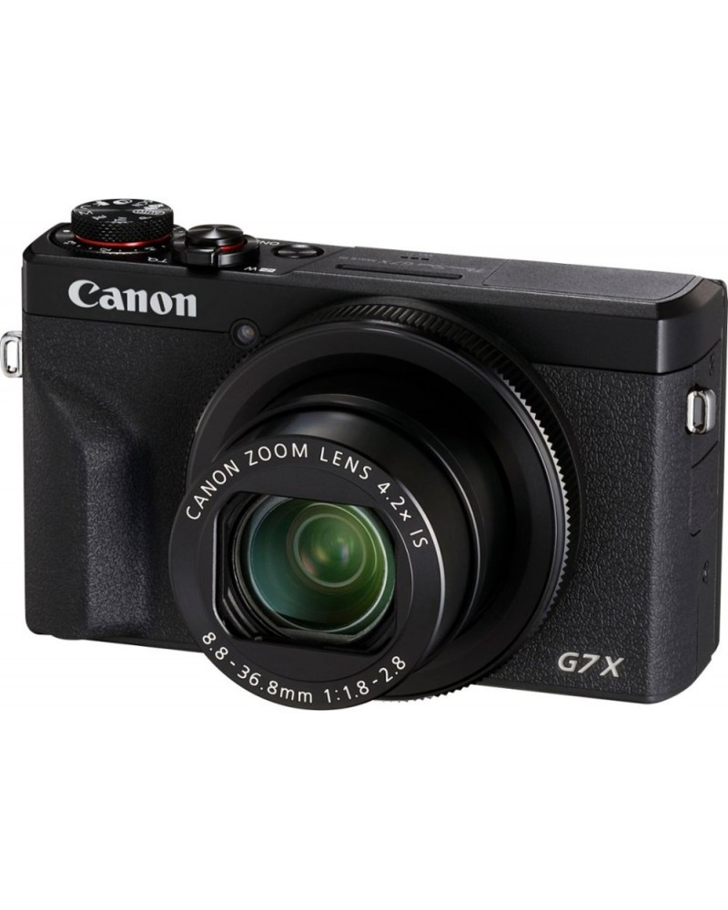 Canon PowerShot G7 X Mark III is a sleek camera distinguished by its advanced sensor design and flexible imaging capabilities. Its 20.1MP 1" CMOS sensor uses a stacked design, which pairs with the DIGIC 8 image processor to realize especially fast focusing performance, full-resolution shooting at up to 20 fps, and UHD 4K30p video recording. Optically, the G7 X Mark III houses a 4.2x zoom lens, which covers a 24-100mm equivalent focal length range for wide-angle to short-telephoto fields of view. An f/1.8-2.8 maximum aperture range suits working in difficult lighting conditions as does an Optical Image Stabilizer, which compensates for the effects of camera shake. The camera's slim design also incorporates a 3.0" 180° tilting touchscreen LCD and has both Bluetooth and Wi-Fi for wirelessly connecting to a mobile device.