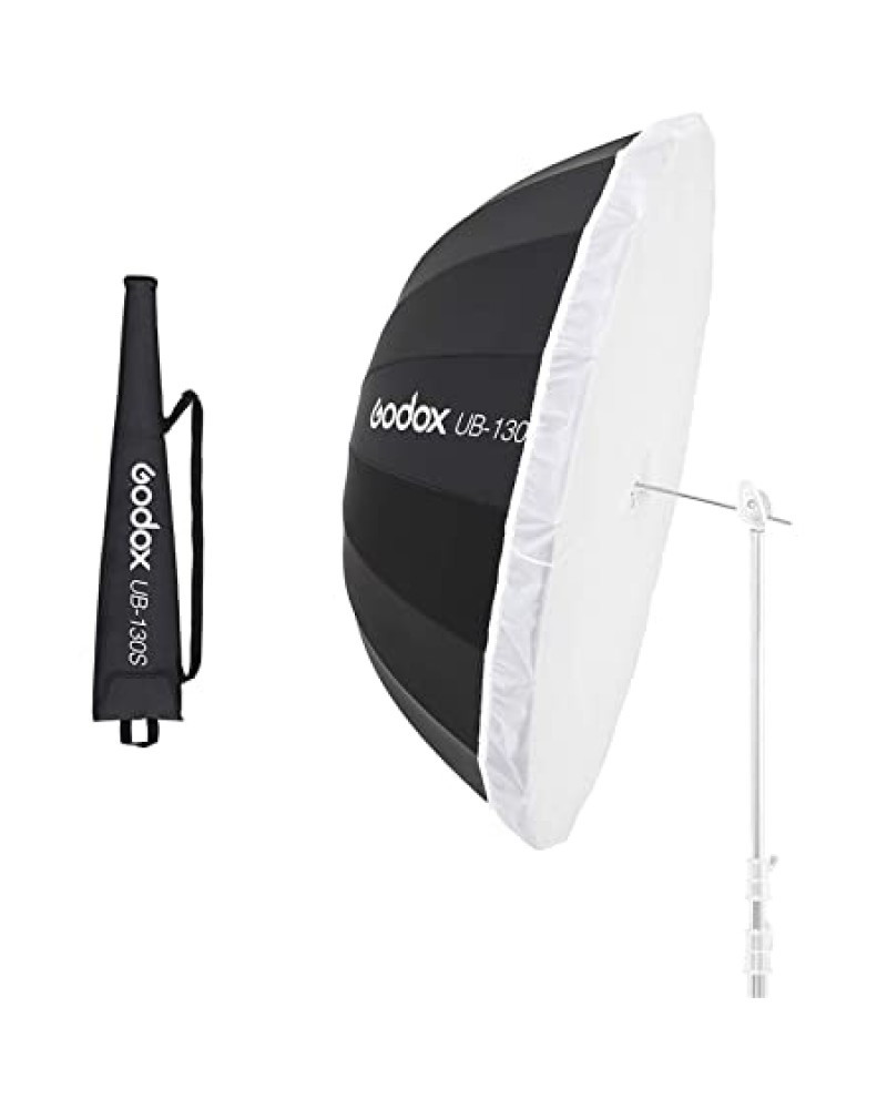 The 51" White Parabolic Umbrella from Godox enhances your ambient lighting and is well-suited for group shots and portraits. The parabolic design and white interior provide long throw capability while reducing overall contrast, and the umbrella can be used as either a key light or fill light.