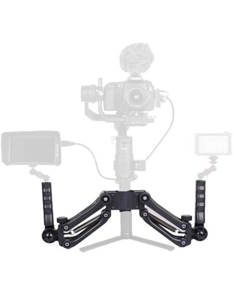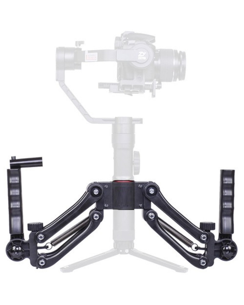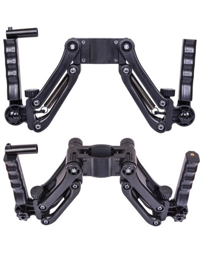 Features: 1)The Dual Handle Grip made from aircraft grade aluminum which means you get an incredibly sturdy metal that barely adds any weight to your hand. 2) Dual independent adjustable fluid damping - from hard action to soft shooting. 3) The direction of the handle will be adjusted, and the end of the handle has a 1/4-inch screw hole for other equipment. 4) Effective shock absorption, help reduce vibrations up and down, and easily obtain a smooth lens; 5) Professional Design 4th Axis gimbal stabilizer for DJI Ronin S, Osmo series, such as Osmo plus, Osmo Mobile/Pro/Raw etc. Notice: ①How to mount your device to 4th axis stabilizer 1.Insert your device to the hub of the 4th stabilizer. 2.Tighten the 4 screws on hub mount. 3.Take up the stabilizer and observe both arms’ level. 4.Adjust the spring tension of both arms by the knob near handle 5.Check if both arms are at the same level. 6.If not, please tune the left and right damping knobs to minimum position, and test filming. If the effect is not good, and then fine tune the knob agin until the springback is minimum. ②How to replace springs 1.Remove the screw and nuts near hub on spring with removal tool and hexagonal wrench, and then remove the spring. 2.Remove the screw and nuts on arm near handle with removal tool and hexagonal wrench. 3.Mount the one side hook of the selected spring with the screw and the nuts. 4.Fix the other hook of the spring and the arm.