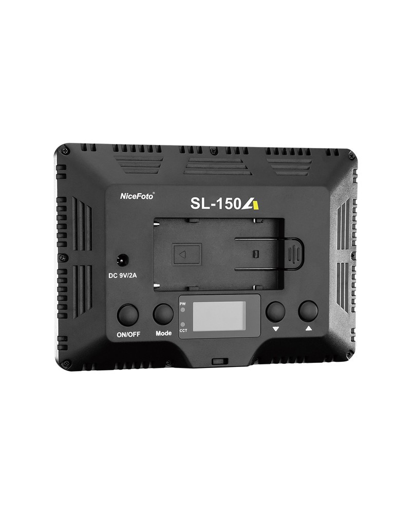 The NiceFoto SL-150A is a 15W Compact LED Softpad video light panel , LCD function display with high CRI LED beads .