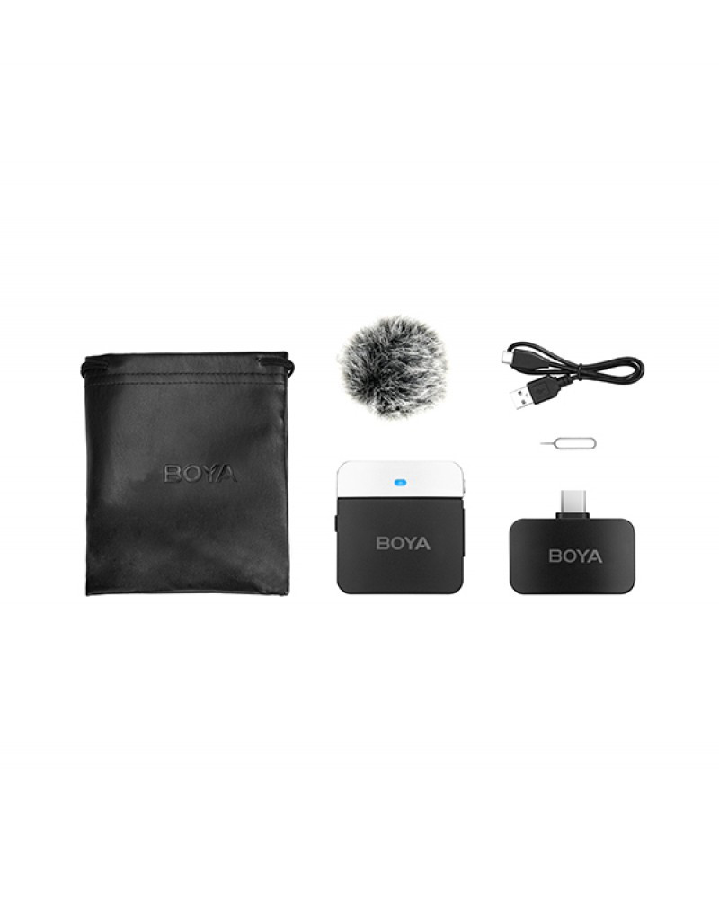 The BOYA BY-M1LV is an extremely lightweight, ultra-compact, and user-friendly 2.4GHz wireless microphone system designed for mobile devices. It offers exceptional sound quality with detailed clarity. This system includes two different receivers: the BY-M1LV-D-RX with a certified Lightning output for Apple iOS devices and the BY-M1LV-U-RX with a USB-C output, compatible with Android phones, tablets, and other devices featuring a USB-C port.