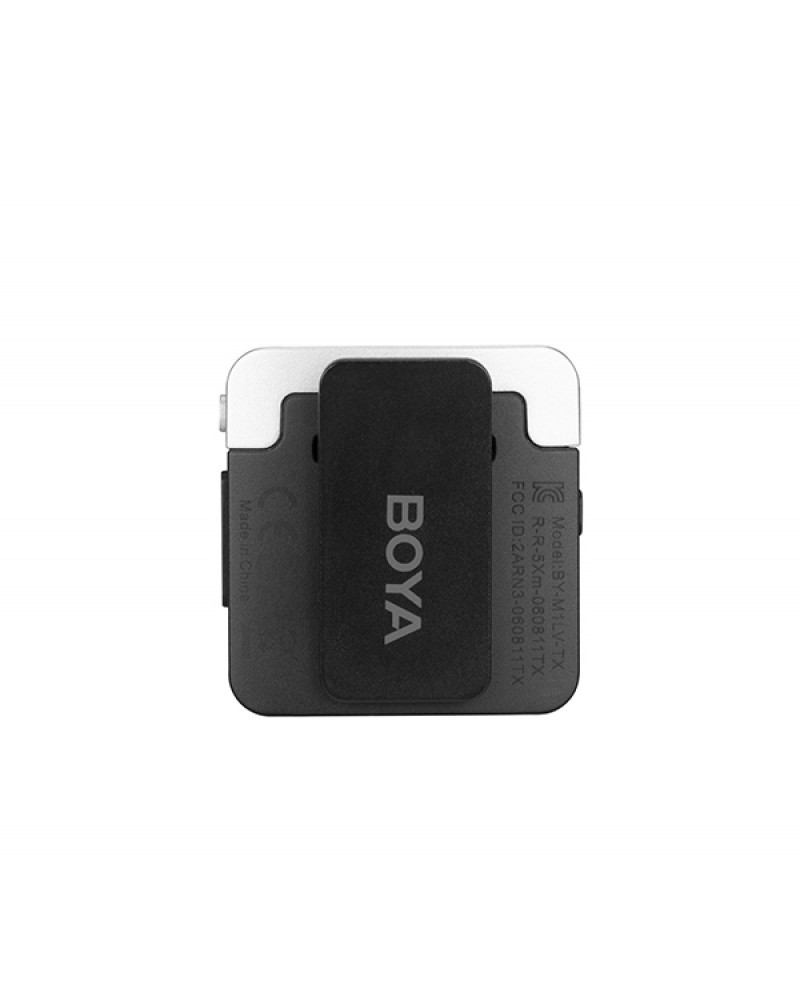 The clip-on transmitter, BY-M1LV-TX, comes equipped with a high-quality built-in microphone and is small and light enough to attach to shirts and clothing. With features like gain control, headphone volume adjustment, and a mute function, you have complete control over your audio. The BOYA BY-M1LV system is an ideal choice for applications such as live streaming, content creation, mobile journalism, and more.