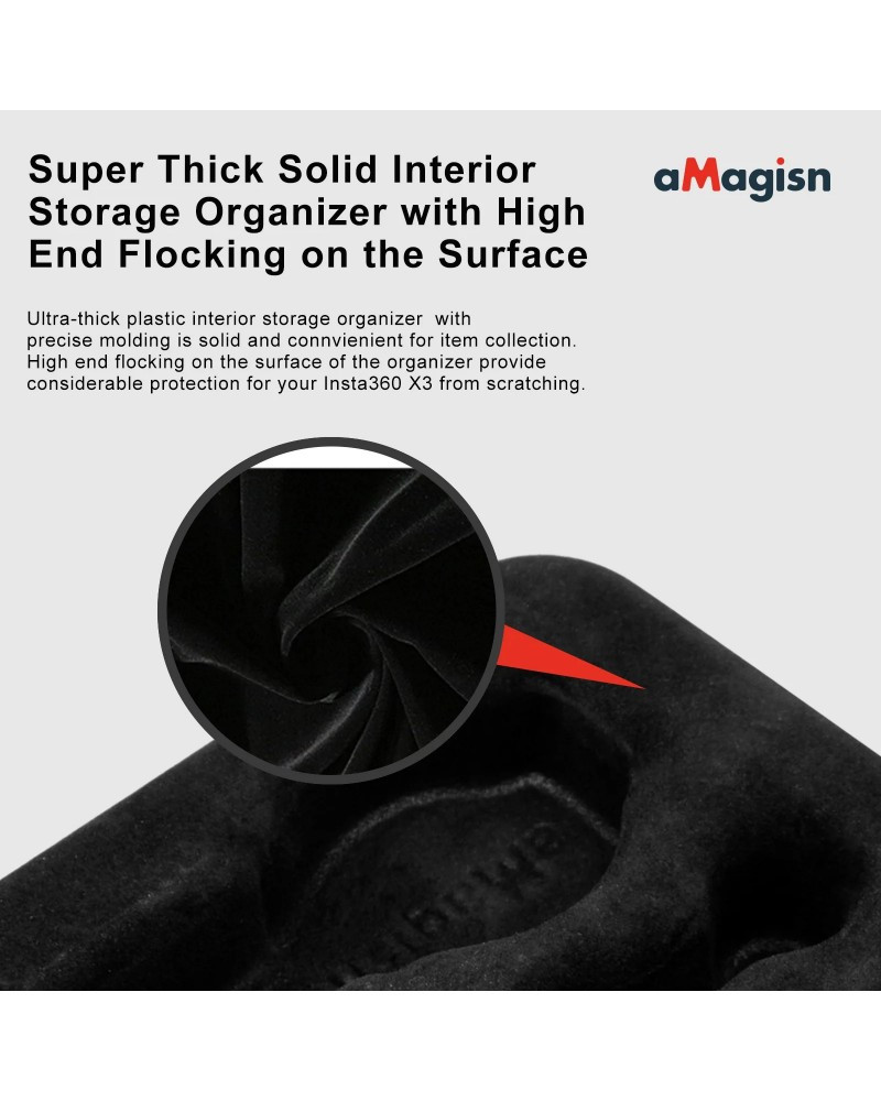 Professional Protective Interior: The inner support is super thick flocking, which can effectively store your camera (for insta360 X3) and all accessories.