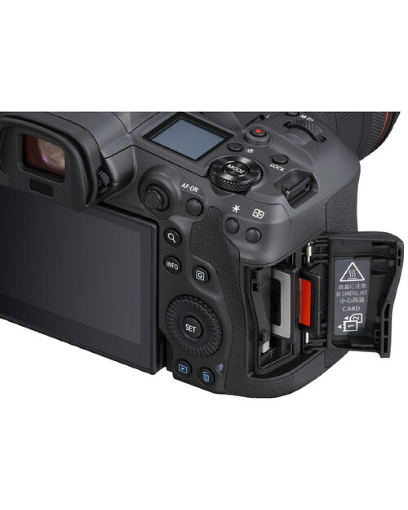 Complementing the imaging assets, the R5, while sporting a new design, also feels familiar to EOS 5-series users. An especially high-resolution 0.5" 5.76m-dot electronic viewfinder provides a realistic 120 fps refresh rate while the 3.2" rear touchscreen LCD monitor sports a vari-angle design to accommodate vlogging needs as well as benefit working from high and low angles. A top status LCD makes for an intuitive workflow and the camera also incorporates dual memory card slots—one CFexpress Type B, one SD UHS-II—along with Bluetooth and Wi-Fi wireless connectivity.
