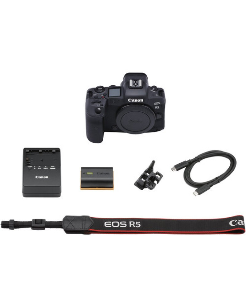 Canon EOS R5. Setting a new standard for versatility, this full-frame mirrorless camera features a newly developed 45MP CMOS sensor, which offers 8K raw video recording, 12 fps continuous shooting with a mechanical shutter, and is the first EOS camera to feature 5-axis sensor-shift image stabilization.