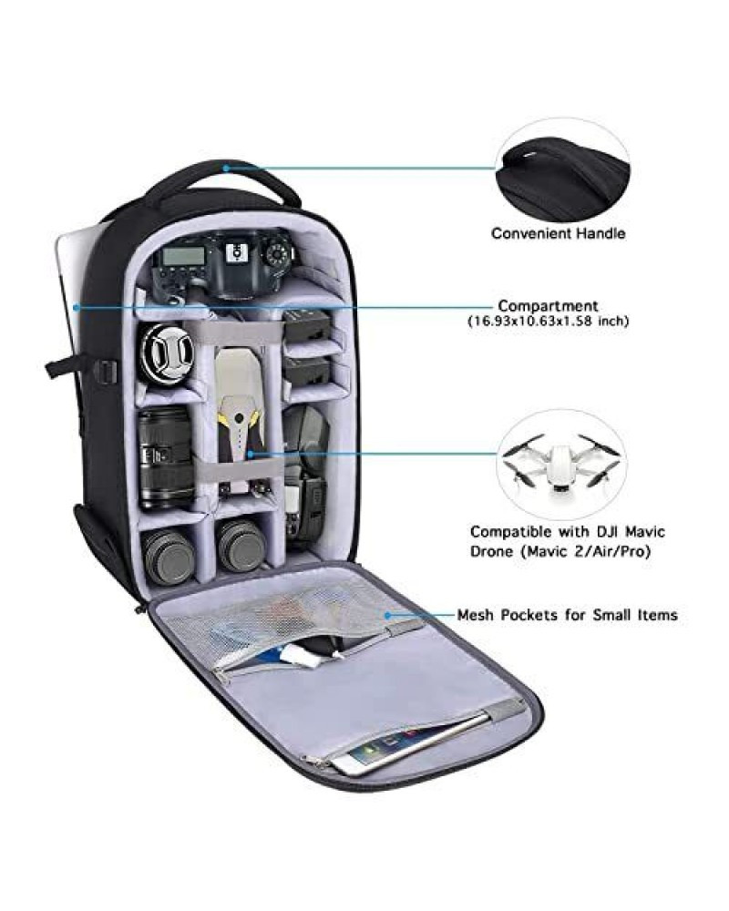 This multifunctional camera bag is professionally designed for DSLR / SLR / Mirrorless cameras of different brands. Compatible with Nikon D5600, D5300, D3500, D3400, D3300, D3200; compatible with Canon EOS Rebel T6, T6i, SL2 and other standard-size DSLRs. Also desigend to be compatible with DJI Mavic Drone(Mavic 2/Air/Pro). 1 year warranty on each bag.