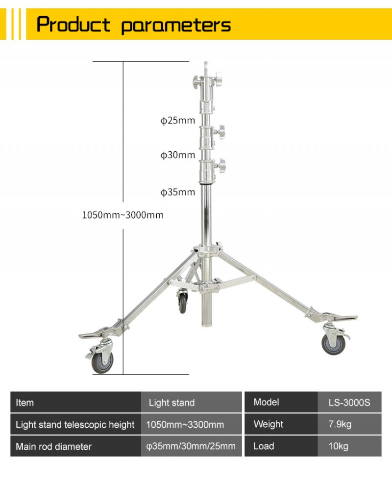 NiceFoto LS-3000S is made of high strength stainless steel. The presented model provides excellent reliability and stability even in gusty wind conditions. Designed for a long service life, perfect for daily use