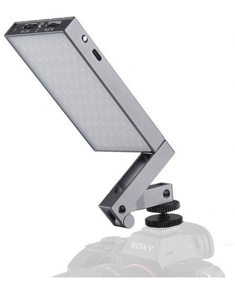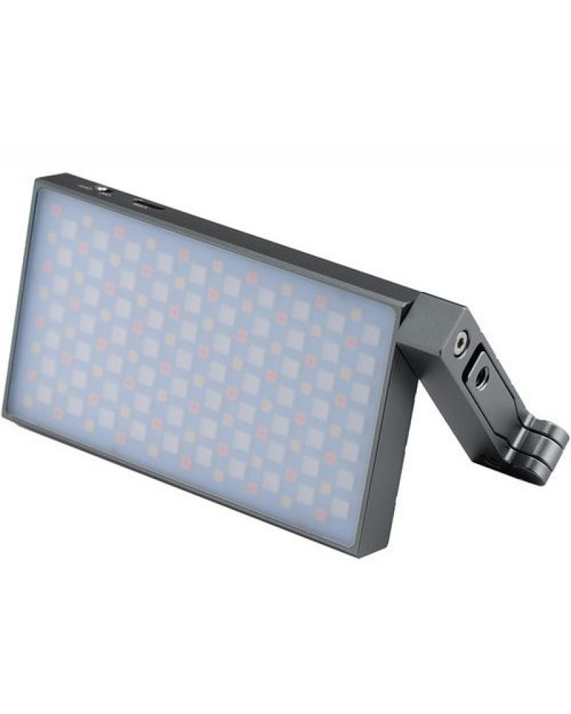 Godox M1 RGB MINI light features an integrated, articulating mounting bracket that includes multiple 1/4"-20 threads for mounting in a variety of positions. There's also a built-in mic to utilize the Music mode, which allows the light to change based on the beat of the music.