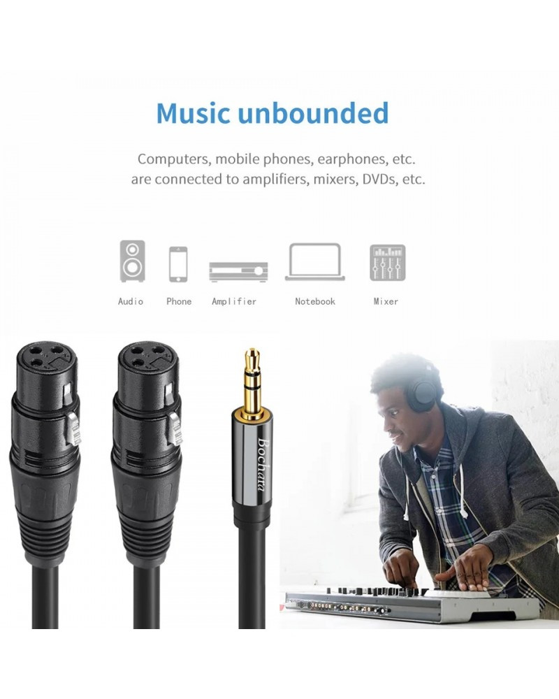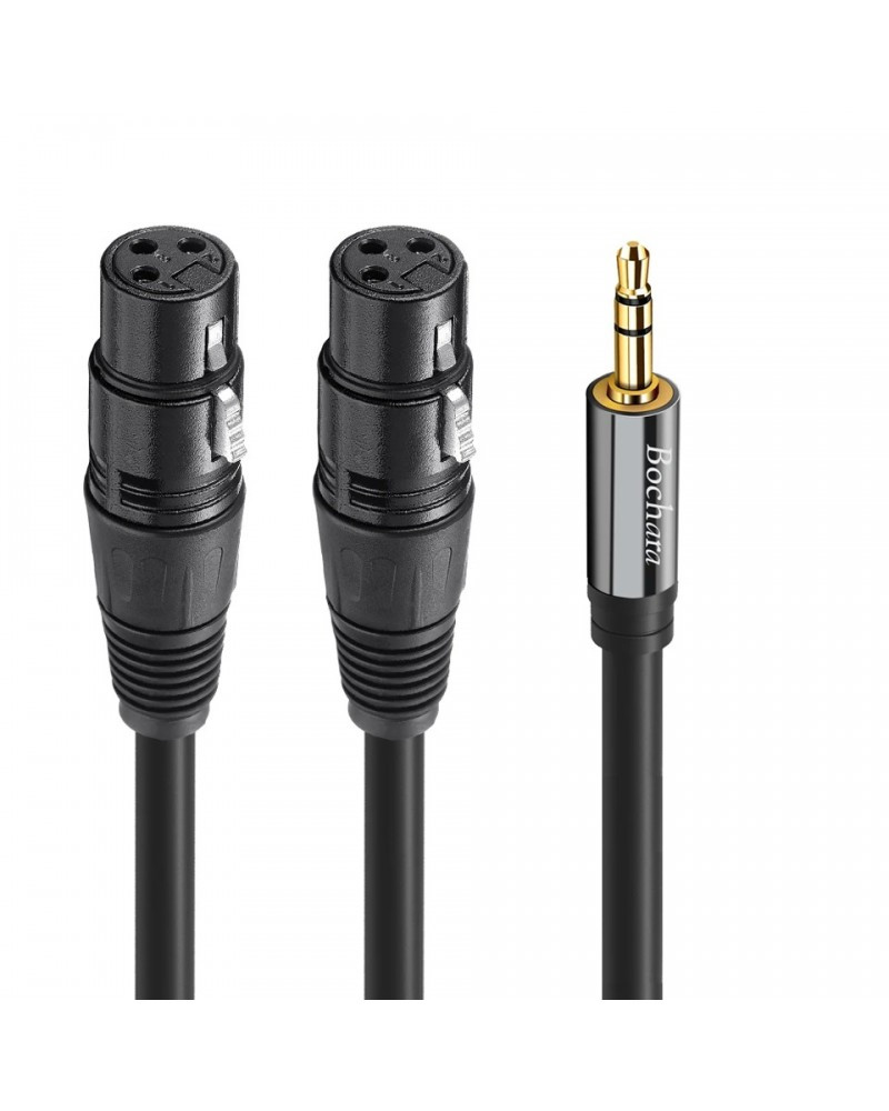 Bochara Dual XLR Female to 1/8'' 3.5mm Stereo Jack OFC Audio Cable Foil+Braided Shielded For Speakers